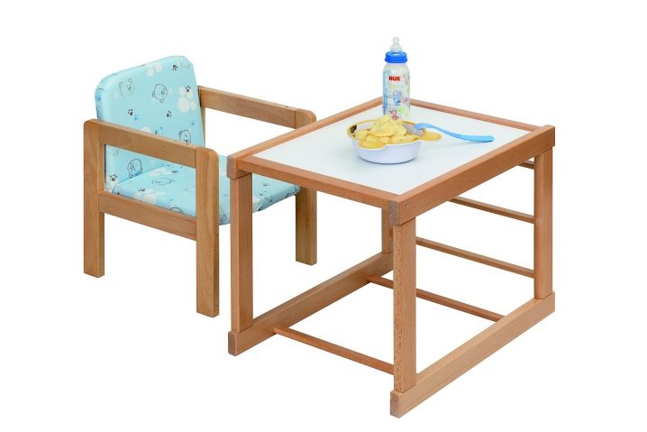 От 6 -месечна възраст родителите могат да преместят столчето за хранене на масата си, като запознаят детето със съвместно хранене. Може да се използва не само за хранене, но и за игра на игри, рисуване, сгъване на пъзели. Може да се направи от дърво или пластмаса.