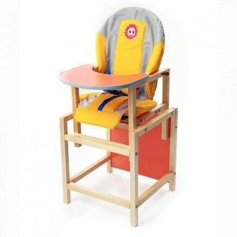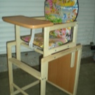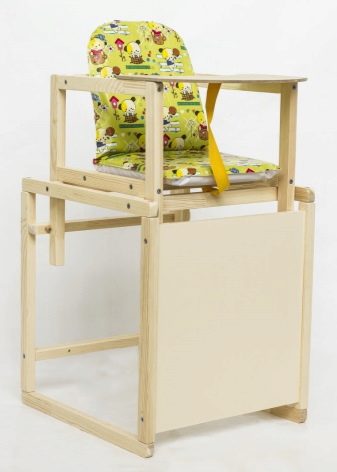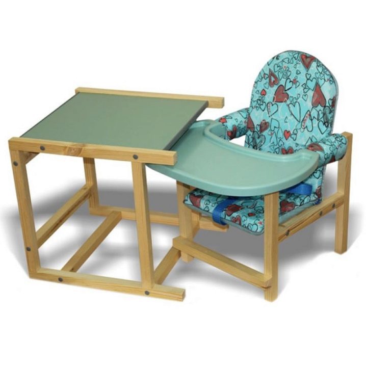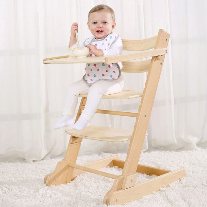 От 6 -месечна възраст родителите могат да преместят столчето за хранене на масата си, като запознаят детето със съвместно хранене. Може да се използва не само за хранене, но и за игра на игри, рисуване, сгъване на пъзели. Може да се направи от дърво или пластмаса.