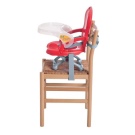 Маса за дете със специална вдлъбнатина за чаша е монтирана отпред. Столът може да се регулира на височина, облегалката се издига и пада. Подходящ е за бебе от 5 месеца до 3,5 години.