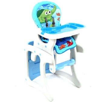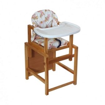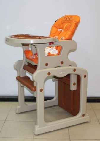 - Някои модели столчета за хранене се трансформират в маса с бюро, което може да се използва не само в процеса на хранене, но и за игрите на предучилищна възраст или заниманията на ученика в началното училище.