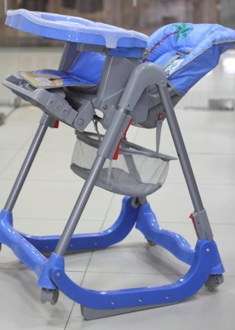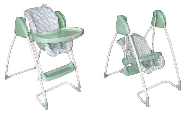 Това е модел люлеещ се стол. В нормалното си положение това е обикновен стол за хранене, в който бебето може да се нахрани, като се закопчава с колани, за да не изпадне. Премахвайки фиксирането, вие превръщате този стол за хранене в люлка.