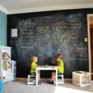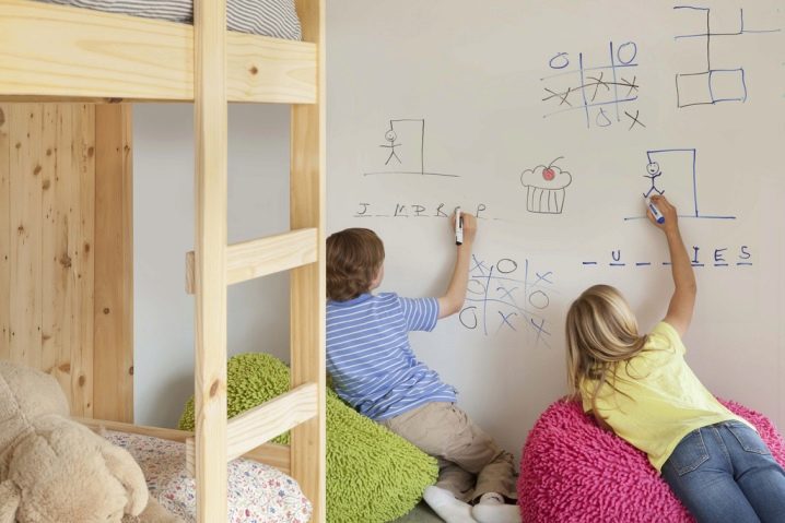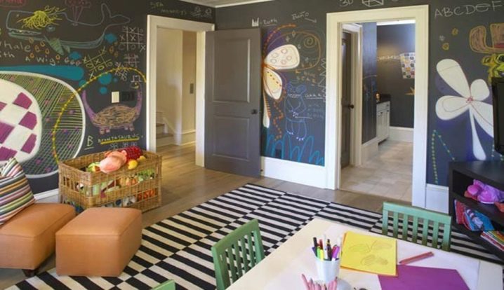 Тази уникална повърхност позволява, без да губите място в апартамента върху стативи и специални дъски, да създадете най -широк обхват за творчество на детето..