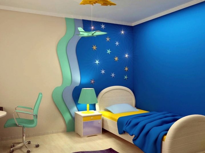 Сред цветовете за детската стая са популярни космическите теми, защото всяко от децата поне веднъж мечтаеше да погледне звездите. Цветните шарки, както и приказният пейзаж от добрите карикатури също не са заобиколени..