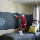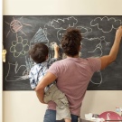 В първия случай детето ще може да прояви въображение с помощта на пастели.. Цветът на тези тапети обикновено е черен или тъмно син. Разбира се, няма нужда да залепвате всички стени на стаята в тъмен тон, понякога е достатъчна една или част от нея. Така че от тапета с тебешир можете да изрежете истинска композиция под формата на силуети на пеперуди, цветя, геометрични форми и да ги боядисате с удоволствие в различни цветове..