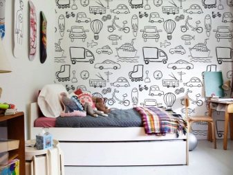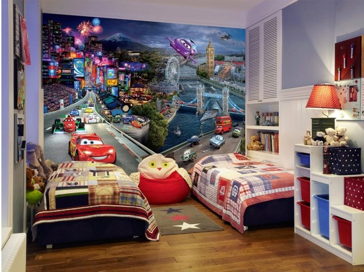 Трудно е да се намери момче, което да не е видяло карикатурата „Колите“ поне веднъж. Излишно е да казвам, че за много капризи те са се превърнали в истински фаворити, което означава, че е време да изненадаме младия фен. Малък пъстър модел на колички изглежда добре на една от стените, ако другите са направени в едноцветен вариант. Фототапетите и панелите с ярки автомобили са особено популярни..