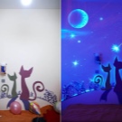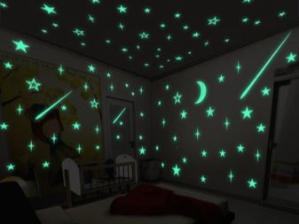 Ако искате да създадете наистина вълшебна среда за вашето бебе, насочете вниманието си към тапета, светещ в тъмното. Струва си да се каже, че през деня те не се различават от обикновените конкуренти. За дома се използват модели на хартиена основа.