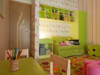 Що се отнася до цвета, струва си да запомните, че тапетите за детска стая не винаги са подходящи за спалня. Така че ярките цветове в детската стая ще зарадват бебето и ще провокират креативност, но в същото време ще вълнуват и отвличат вниманието от съня. Решението ще бъде разделянето на детската стая на зони с различни цветове. За новородените е още по -добре да изберете пастелни цветове за цялата площ на стаята..