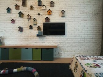 Детски тухлен тапет в светли и сиви цветове е подходящ за детска стая за тийнейджъри. Тяхната уравновесеност ще помогне на възрастните деца да се успокоят след натоварения ден. Тухлените тапети трябва да се редуват с всеки друг вид.