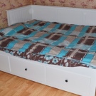 Говорейки за популярните легла от Ikea, няма как да не споменем модела Hemnes. Основата на такова легло се допълва от три чекмеджета, където можете да поставите всички необходими малки неща. Това легло е щадящо околната среда. Може да се инсталира в стаите дори на малки деца. Това разтегателно легло може да се преобразува от единично легло в двойно легло, ако е необходимо.