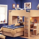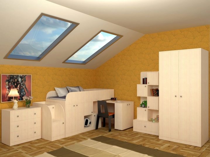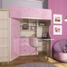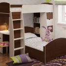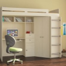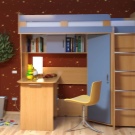 Такова легло на таванско помещение е цял комплекс от необходими мебели за вашите деца, разположени компактно. Този необичаен елемент от интериора ще внесе уют в детската стая. Децата с удоволствие ще играят в такъв комплекс и няма да се страхуват да останат сами в такава стая..