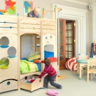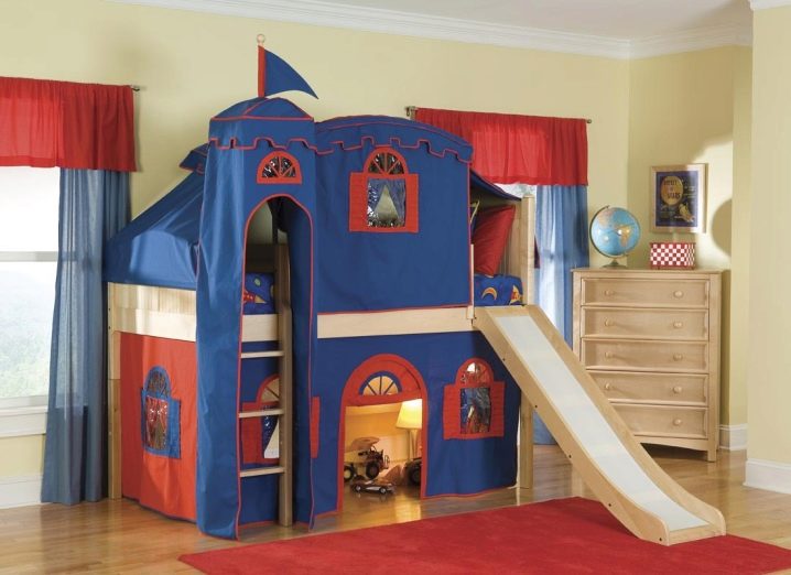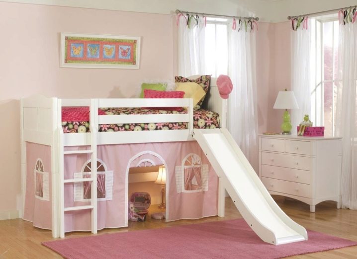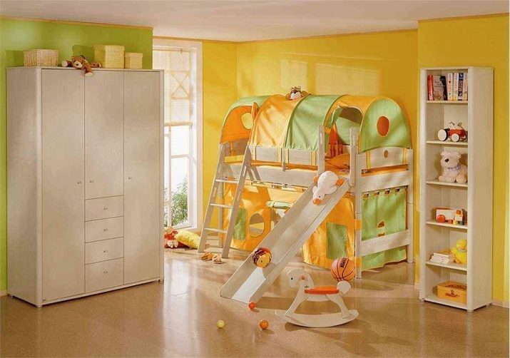 Когато избирате легло за дете на 2 и повече години, дайте предпочитание на модели, в които мястото за спане е разположено доста ниско, на разстояние около метър от пода. В долната част на този дизайн можете да поставите просторни кутии за играчки и бебешки дрехи. Това е много удобна и компактна мебел, която ще заема много малко място в стаята. За деца от 3 години също се избират ниски легла, но на долния ред на такъв, макар и нисък, но доста просторен дизайн, можете да поставите много необходими неща и играчки. Можете дори да подредите плот за маса или зона за игра под формата на палатка, което определено ще зарадва вашето мъниче..