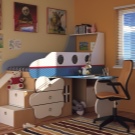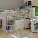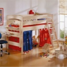 За малко по -голямо дете или тийнейджър е по -добре да закупите модел легло на таванско помещение над един и половина метра, така че такъв модел да съдържа както място за спане, така и необходимите шкафове, рафтове и компютърно бюро. Ако дизайнът на такова легло на таванско помещение е доста голям, е възможно на първо ниво да се осигури дори зона за релакс под формата на диван или пуфи, ако размерът на такъв продукт го позволява. Когато избирате модел легло на таванско помещение за тийнейджър, дайте предпочитание на опции, които са направени в по -спокойни цветове, важно е да обърнете внимание на стила на този продукт. Този дизайн трябва да се вписва добре в обстановката на стаята на вашия син или дъщеря и трябва да има стилен и съвременен дизайн..