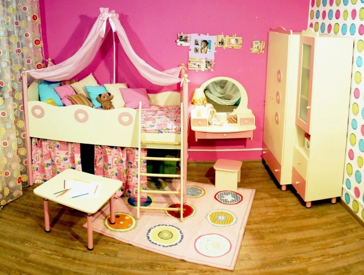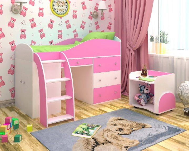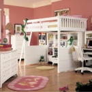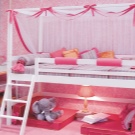 За момичета обикновено се избират по -нежни и романтични тонове.. Белите модели тавански легла изглеждат много елегантно в стаята за момичета. Бебетата предпочитат повече пастелни нюанси: бледо розови, бледосини или светло жълти тонове. Но за енергични деца е по -добре да закупите по -ярко оранжево или люляково легло на таванско помещение. Таванското легло за момиче може да бъде декорирано под формата на вълшебен замък с необичайни цветове със сребристо покритие.