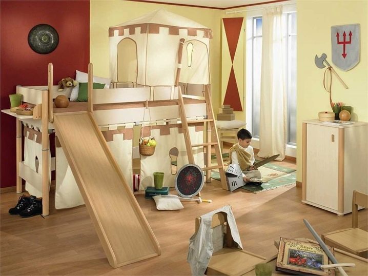 За едно момче интересно дизайнерско решение би било да украси таванско легло в морски стил или в пиратски стил. В този случай кутиите могат да бъдат заменени "сандъци със съкровища", където могат да се съхраняват играчки. Едно от любимите на момчетата е и детската стая на тема автомобил с легло на таванско помещение..