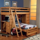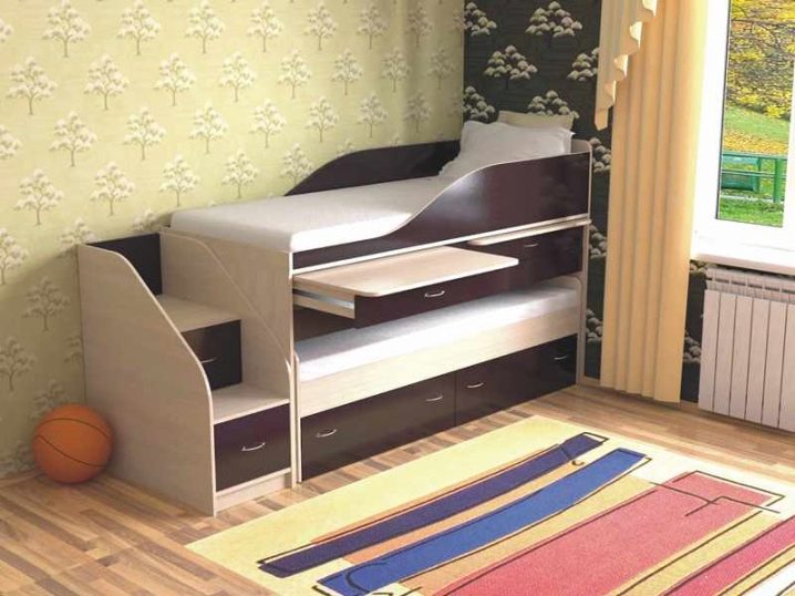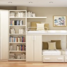 Подобрен двуетажен модел е представен от трансформиращо се легло. Има много видове от тях, така че чрез сгъване на две нива към стената те могат да образуват малки рафтове или тяхната имитация. Освен това едно място за спане може да се превърне в бюро за писане..