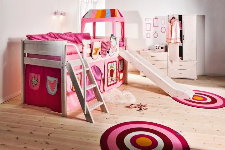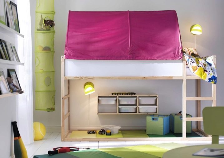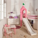 Двуетажно легло с кът за игра може да се превърне в любимо място за престой в апартамента. Така че, моделите могат да бъдат оборудвани с пързалка или люлка, да имат малка масичка отстрани за чай с любимите ви играчки или правилно четене на бюрото. Също така, долният ред може да бъде допълнен със сладки завеси, които превръщат обикновеното креватче в подслон, палатка и просто място за уединение..