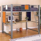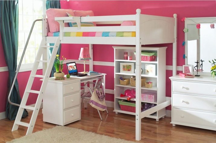 Двуетажното легло в таванското помещение няма долно легло. На негово място има множество разгъващи се шкафчета, работна маса и система за съхранение. По този начин работна зона и зона за отдих се комбинират в едно пространство. В същото време височината на моделите е значително по-ниска от пълноценните двуетажни легла за две деца, което позволява на децата и родителите да не се страхуват от височината на конструкцията.