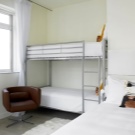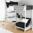 Проста и стилна версия на двуетажно легло е представена от Ikea. Страничните страни и вертикалната стълба са идеални за ученици. Минимализмът в декора прави модела органичен във всеки интериор.