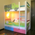 Детското легло на този модел има две нива, тоест едното легло се намира над другото легло. Модернизиран вариант беше двуетажно легло с място за спане отгоре и игрална или работна зона отдолу.