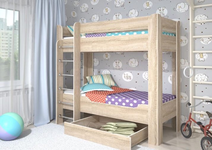 Двусекционният модел е идеален за практичния родител, който обмисля предварително оформлението на детската стая. Леглото се предлага с подвижно горно ниво, което позволява да се използва като обикновен модел до раждането на второто дете. Спестяванията в семейния бюджет са очевидни тук. Различни дизайни и стълби са лесни за използване. Преди да закупите такъв модел, важно е да проверите всички крепежни елементи, тъй като има чести случаи на разхлабване на подвижни части.