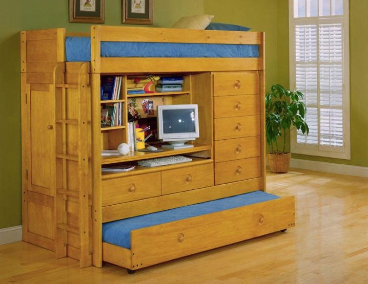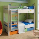 Разбира се, всички деца обичат тези модели легла. В края на краищата те са мястото за игра, позволяват на фантазията да развива и да повишава креативността. В допълнение, двустепенните легла ще служат като добър симулатор за развитие на физическа годност при децата. Ако семейството има едно дете, тогава такова легло също ще бъде напълно подходящо. Горното ниво може да се използва за спане, докато долното ниво може лесно да организира работно пространство.