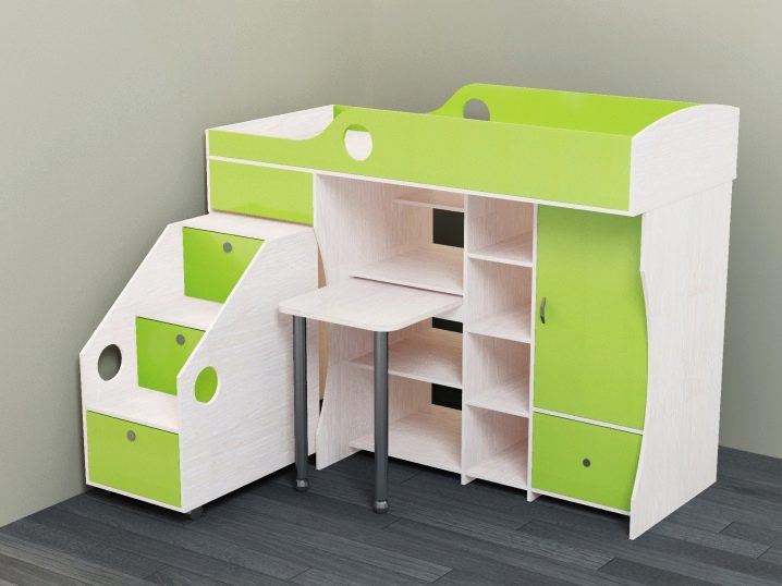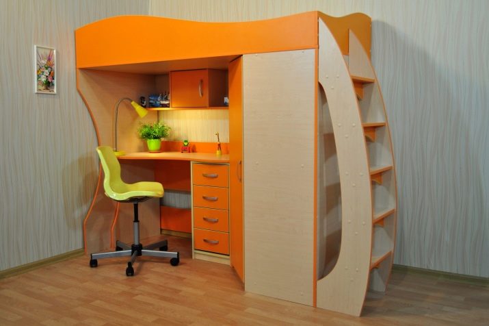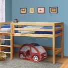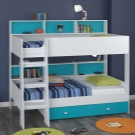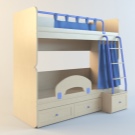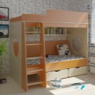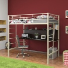 - Дизайнът на леглото е друг критерий при избора на конкретен модел. Разбира се, основният критерий е неговата безопасност. Една от конструкциите от този тип е леглото на таванско помещение, предназначено за едно дете. Това е чудесен вариант за малка стая. Този дизайн има няколко опции за модел. Ако има работно място отдолу, мястото за спане е съответно отгоре. Някои от тези модели са допълнени със стабилни стъпала, в които производителите монтират чекмеджета..