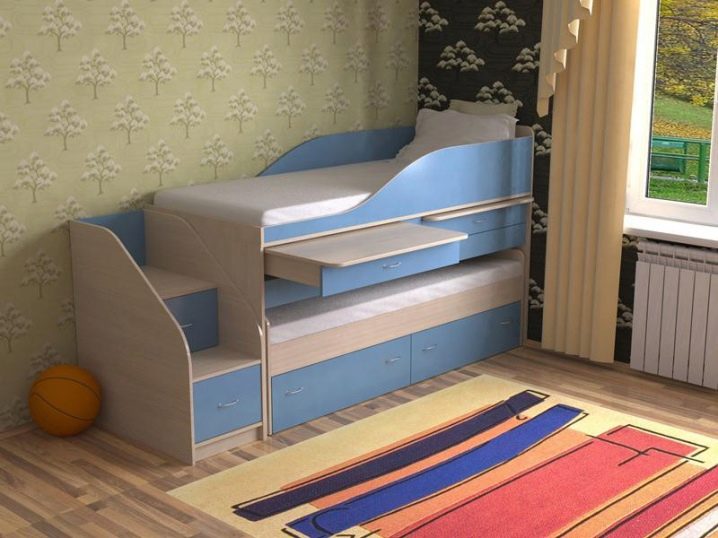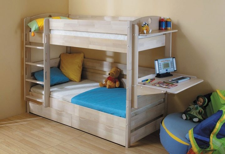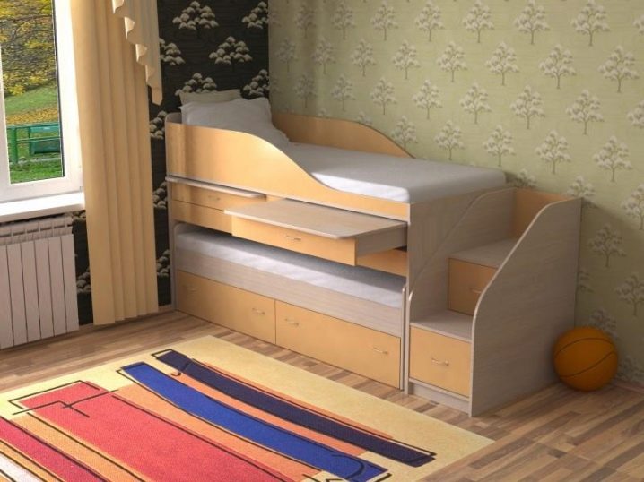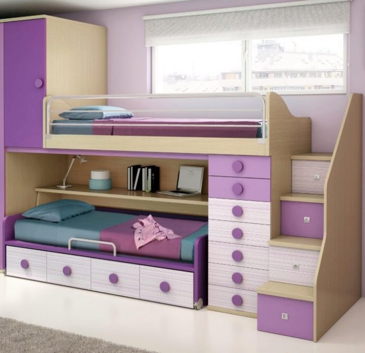 Отличен вариант за спестяване на място би било легло на две нива с кутии за съхранение. По правило те се намират под долното легло. Добър вариант, ако липсва свободно пространство, би било легло с работна зона, което се намира отдолу. Благодарение на този дизайн родителите не могат да затрупват пространството в стаята и да оставят достатъчно място за игра на детето. Интересно решение е плъзгащо се двуетажно или триетажно легло. Всички нива в такъв модел са приблизително на едно и също ниво, а най -горният достига височина от един метър. Това е чудесен вариант за легло за трима.