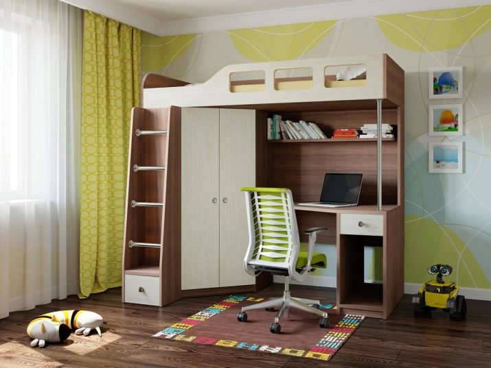 За деца от различен пол си струва да изберете лаконични опции в неутрални цветове. Не забравяйте за общата концепция за стаята, където всички текстури и цветове трябва да се пресичат помежду си. Такива модели често се срещат с работна зона..