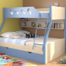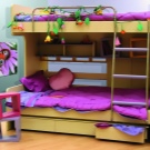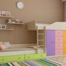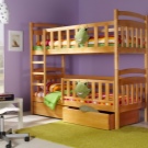 За най -малките потребители специалистите са разработили модели с ниско легло. В този случай под едно от леглата може да има само няколко кутии за съхранение на дрехи или играчки. Интересно решение ще бъде леглото-стена.