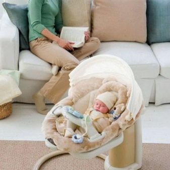 - Допълнителни функции. Ако родителите планират да използват електронната люлка възможно най -дълго, има чудесна функция да ги използват като стол за хранене и игра; при такива модели в комплекта е включена специална маса. И ако детето може да се люлее в тях, тогава интересът му няма да отшуми, стига да може да се побере в тях.