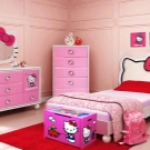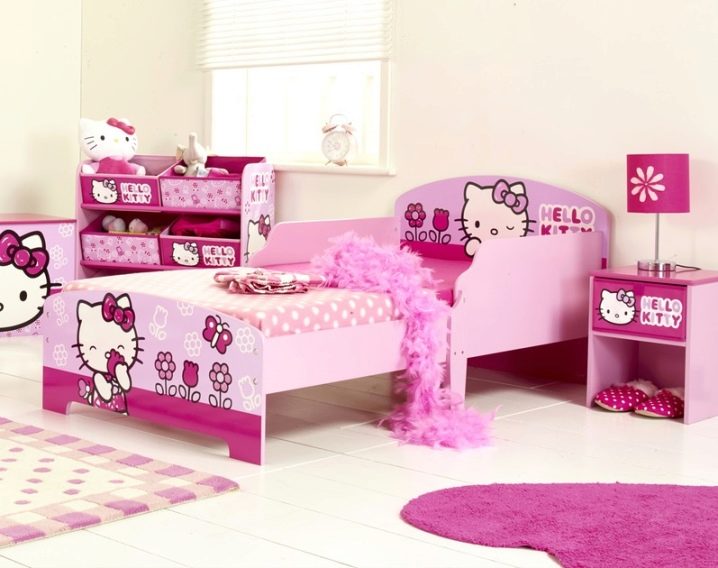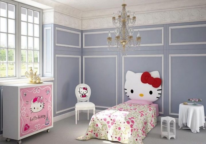 Малките момичета се възхищават повече на сладки снимки на Hello Kitty. Този отпечатък е известен на мнозина и може да украси както стените на леглото, така и таблата му..