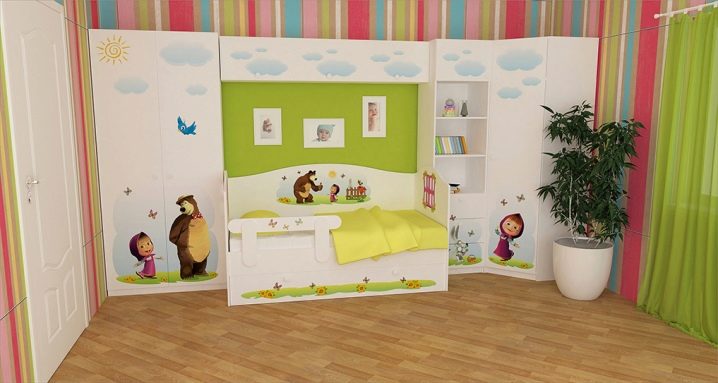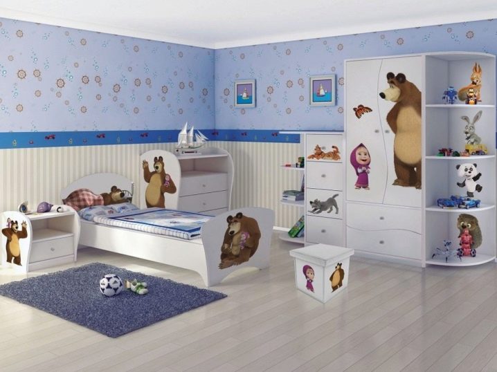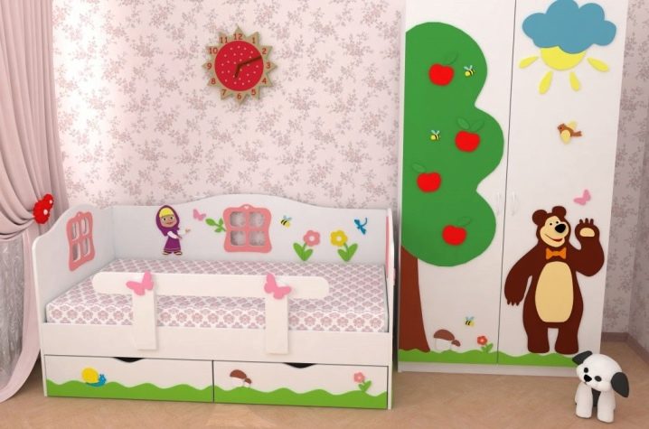 Най -хубавото е, че щампи с образа на ярка Машенка ще украсят спалнята на малко момиченце, което е толкова положително, колкото и главният герой на карикатурата.