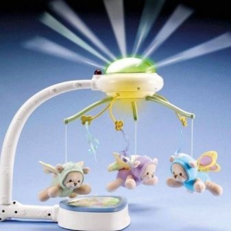Мобилните са механични, електрически и мобилни с допълнителни функции.. Механичните модели са най -често срещаните. По своя принцип на действие те приличат на музикални кутии, тоест, за да може мобилният да работи, трябва да развиете пружината. Този модел, в сравнение с други, е евтин, но състоянието на раната е достатъчно само за две до три минути..