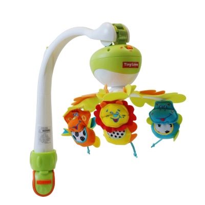 - Мобилен “Весела Африка” от производителя Tiny Love. Моделът е абсолютно универсален. Разполага със стойка за креватче, щипка за количка и каишка за велкро за столче за кола. Също така, моделът има 5 мелодии за избор. Висящи играчки, могат да бъдат свалени и дадени на детето, когато порасне малко.