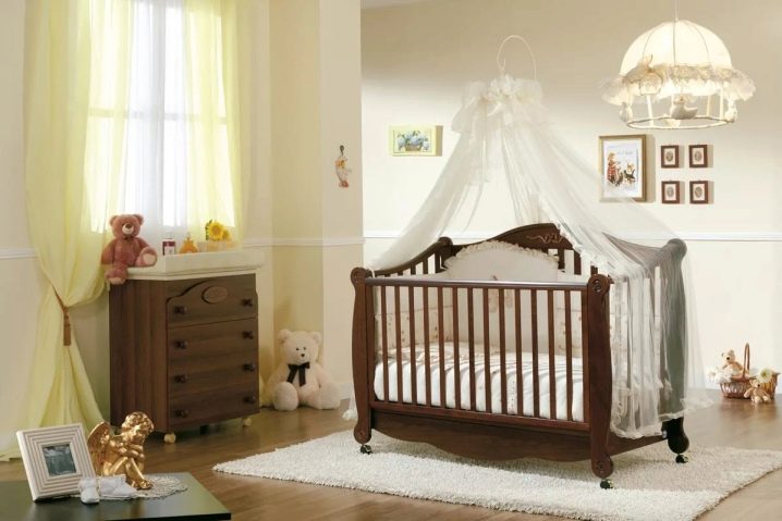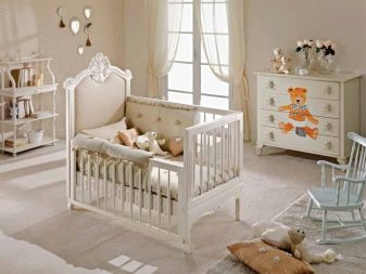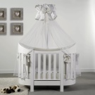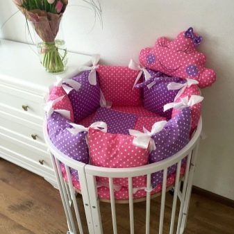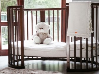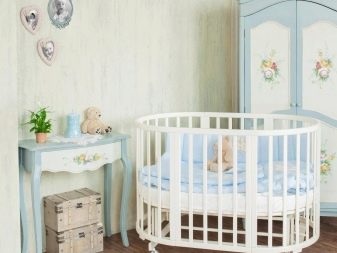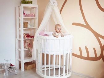 Овалните и кръгли форми на яслите изискват малко повече пространство, но изглеждат оригинално във всеки интериор. Един от съществените недостатъци на този дизайн ще бъде, че детето по -рано ще израсне от кръгло креватче от Италия, а родителите ще трябва да купят по -просторен модел скоро след раждането. Между другото, има легла, които “растат” с бебето, тоест кръгло легло постепенно се трансформира в овално: става по -дълго.