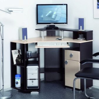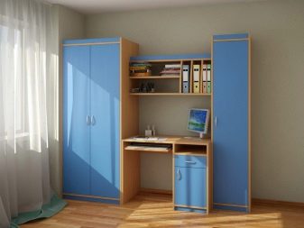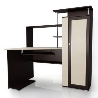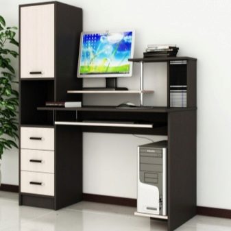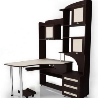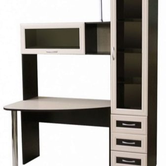 Често компютърно бюро се използва не само за работа на компютър, но и като основно работно място. В стаите на деца и тийнейджъри той играе ролята на място за учене, творчество и четене. Не е много удобно да ставате през цялото време, за да вземете необходимата за работа книга от килера, особено ако домашната библиотека е в друга стая, например в хола. Следователно имаше компютърни маси с гардероб, който ви позволява да съхранявате книги наблизо..