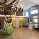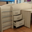- Комплекс, който съчетава всички зони на детската стая: за почивка, за сън и за съхранение. Структурата заема много място, но ако може да бъде позиционирана по стената, тогава други мебели изобщо няма да са необходими. Мебелите са изработени от естествено дърво с използване на метални и пластмасови части. Цветовата схема е достатъчно спокойна и не може да отвлече вниманието от работата.