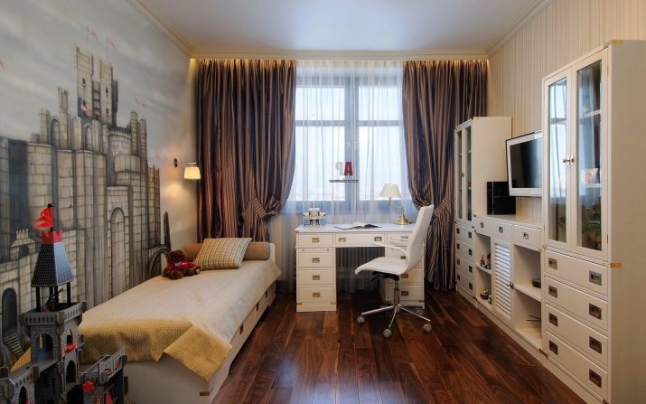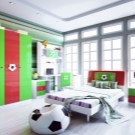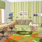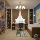 - Класическият интериор в студентската стая е представен от ъглова компютърна маса с рафтове и гардероб. Универсален стол, изработен от пластмаса и метал, органично допълва работната зона. Светлите цветове са избрани много правилно, тъй като имат успокояващ ефект върху психиката на детето. А местоположението до прозореца добавя максимална светлина и пространство в стаята..