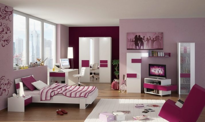 - Ярък пример за модулно компютърно бюро. Деликатна детска стая за момичета е оборудвана с практична и многофункционална маса за часове.