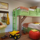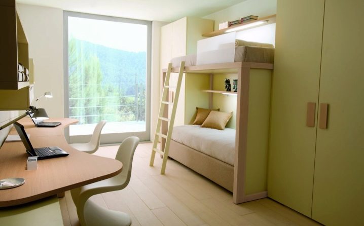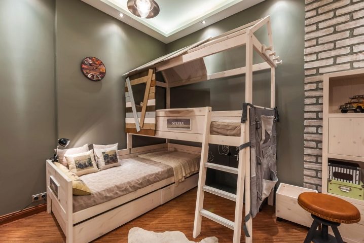 За различните полове деца е по -добре да изберете модели двойни легла с отделно легло, които могат да бъдат разположени в другия край на стаята..