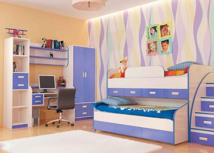 Детските двойни легла се различават от обичайните по своята ширина. Те са чудесни за деца от същия пол. Можете да поставите такова легло в детската стая, ако площта на стаята позволява.