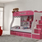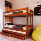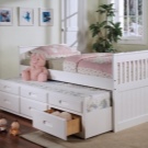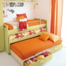 Голям брой чекмеджета могат да бъдат разположени под двойното легло, в което децата съхраняват всички необходими неща. Системите за изтегляне на шкафчета са разположени под тялото, под матрака, те могат лесно да се изтеглят по осите.