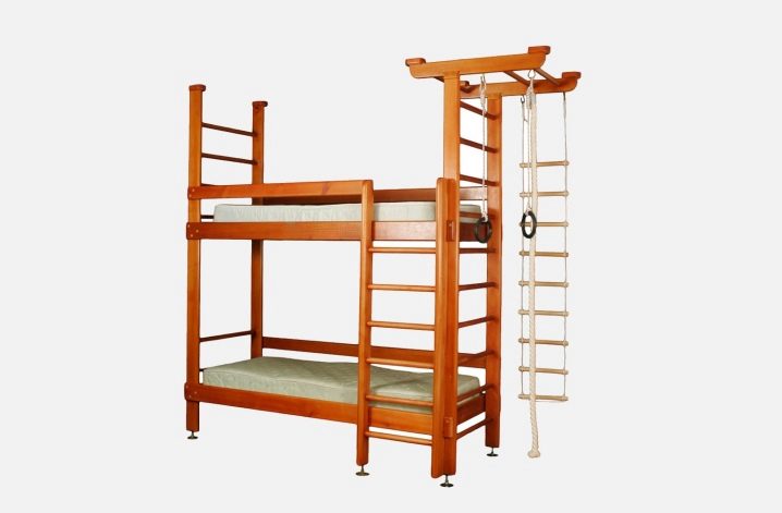 - Стилен и модерен дизайн – разнообразието от модели детски легла за две деца е невероятно. Те могат да бъдат или ярки цветове, или оборудвани със специални устройства за игри. Например, двуетажни легла, оборудвани с шведска стена, не само ще бъдат отлично място за почивка, но и за активни игри и поддържане на форма..