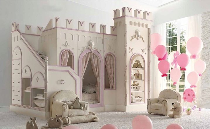 Друг интересен вариант би бил дизайнът на детска стая под формата на приказен замък. Добавете като декорация – изображението на карета, броня, дракон. Можете да измислите герб за принцеса и мото за рицар.