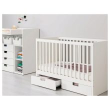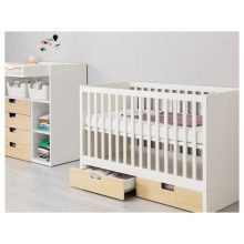 Много модерен модел детско креватче за новородени. Идеално ще се впише в интериора на апартамент, декориран в хай-тек стил. Предните и задните панели са изработени от екологично чисти ПДЧ, ПДЧ и пълнител от естествено дърво. Рамката и панелите във формата на пръчка са изработени от естествен бук. Моделът Stuva е най -функционалното креватче за бебета от шведската компания, тъй като в своя дизайн има чекмеджета за съхранение, които са боядисани в най -различни цветове..