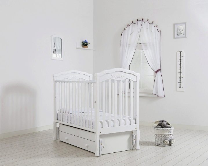 Оригиналното изрязване в горната част на страничния панел прави красив и детински деликатен модел. Оригиналните крака допълват деликатния вид. Яслите имат приятен млечен цвят, който е идеален за декориране на стаята на новородено. В допълнение, белите мебели хармонично се вписват в абсолютно всеки интериор..