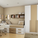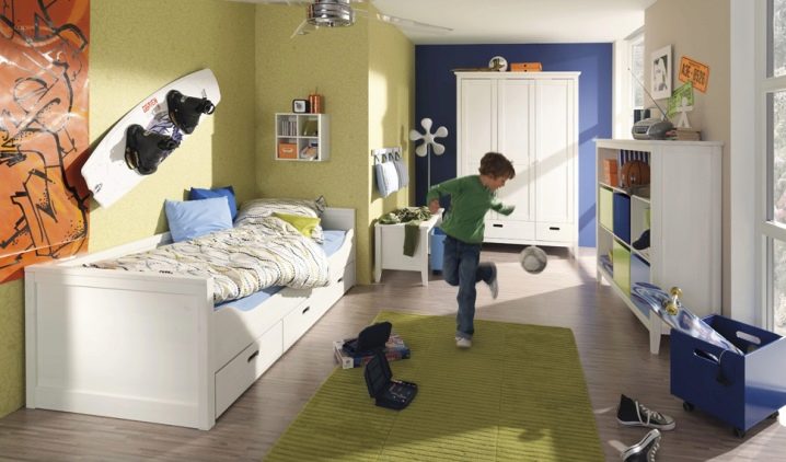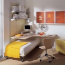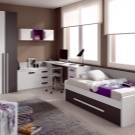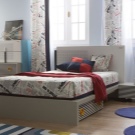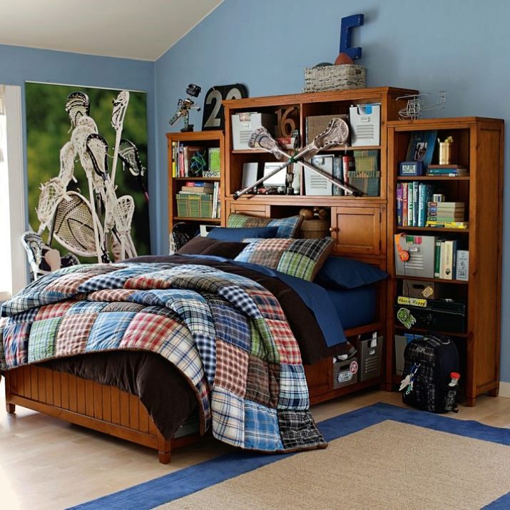 На първо място, според всички правила, се избира легло. Момчетата, като правило, не се нуждаят от ярки цветове и пъстри цветове, те са по -лаконични. Основното е, че леглото на тийнейджъра съответства на параметрите на неговата височина и има ортопедичен матрак, защото младият мъж все още се развива и стойката му се формира и всичко това изисква специален контрол.