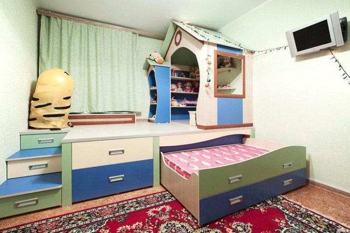 Подиумното легло е място за спане, което се разточва само когато е необходимо (за сън), а през останалото време не се вижда, то е скрито в ниша. Разположението на леглото може да бъде перпендикулярно на подиума, а другата част от нишата поема ролята на чекмеджета. Този дизайн на леглото е най -добрият начин да спестите място в стаята. На самия подиум можете да подредите работна зона и да я направите учебна стая.