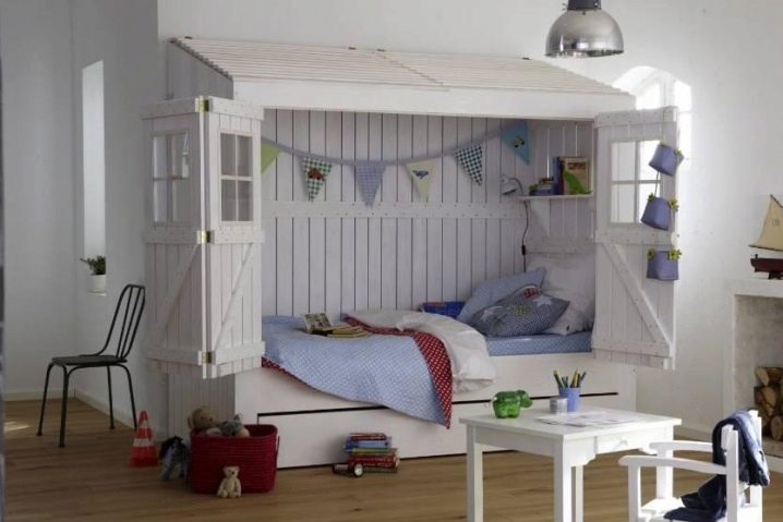 Друга версия на такива модели има чекмедже, в което лесно можете да оборудвате друго легло, ако е необходимо. Това може да бъде много полезно, когато например някой от гостите остане през нощта..