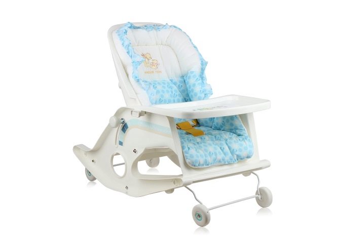 Когато бебето се научи да седи, можете да продължите да използвате устройството като люлка за шезлонг, а когато е необходимо – прикрепете маса за хранене.